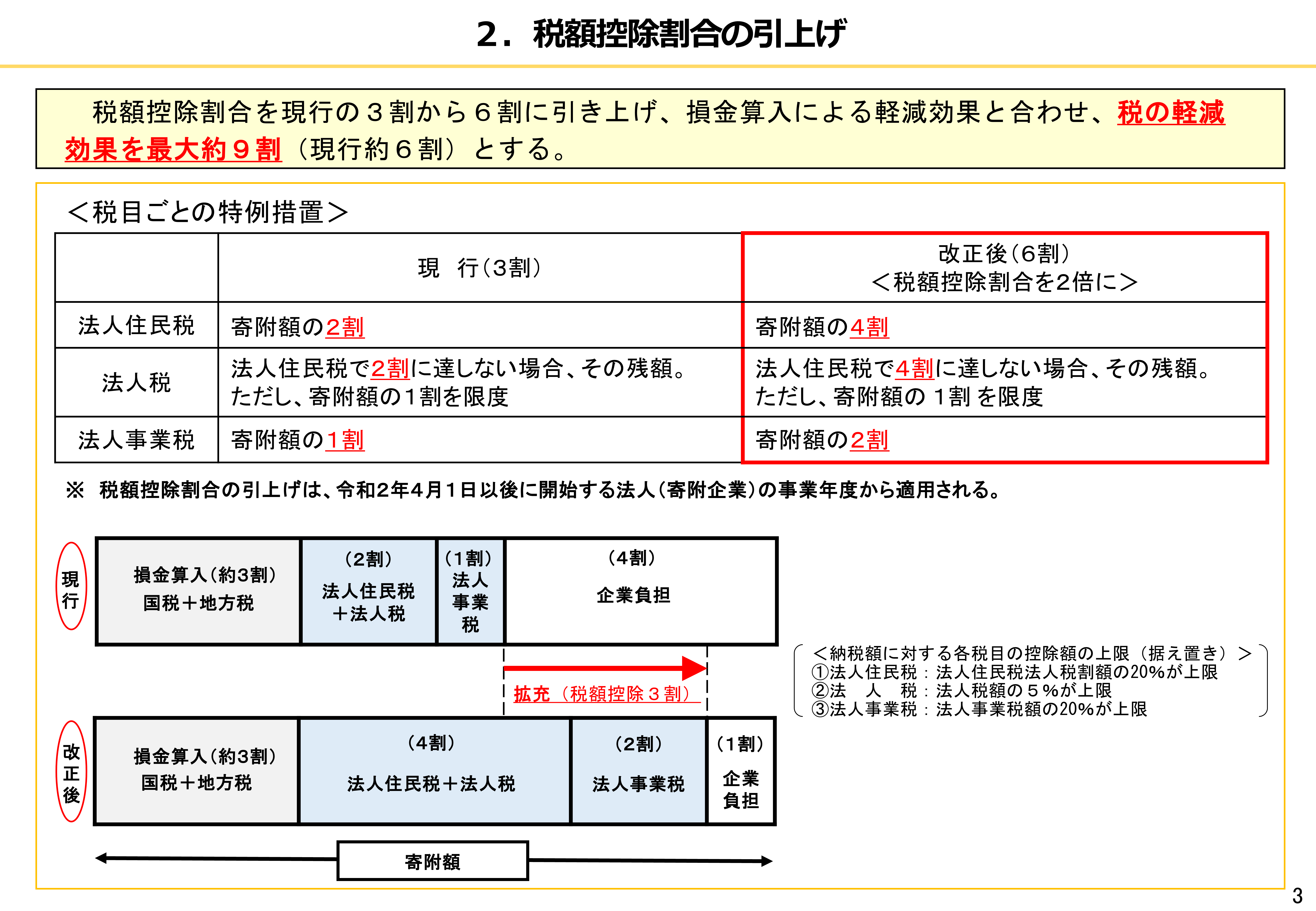 法人住民税で4割に達しない場合、その残額を税額控除(寄付額の1割、法人税額の5%が上限)