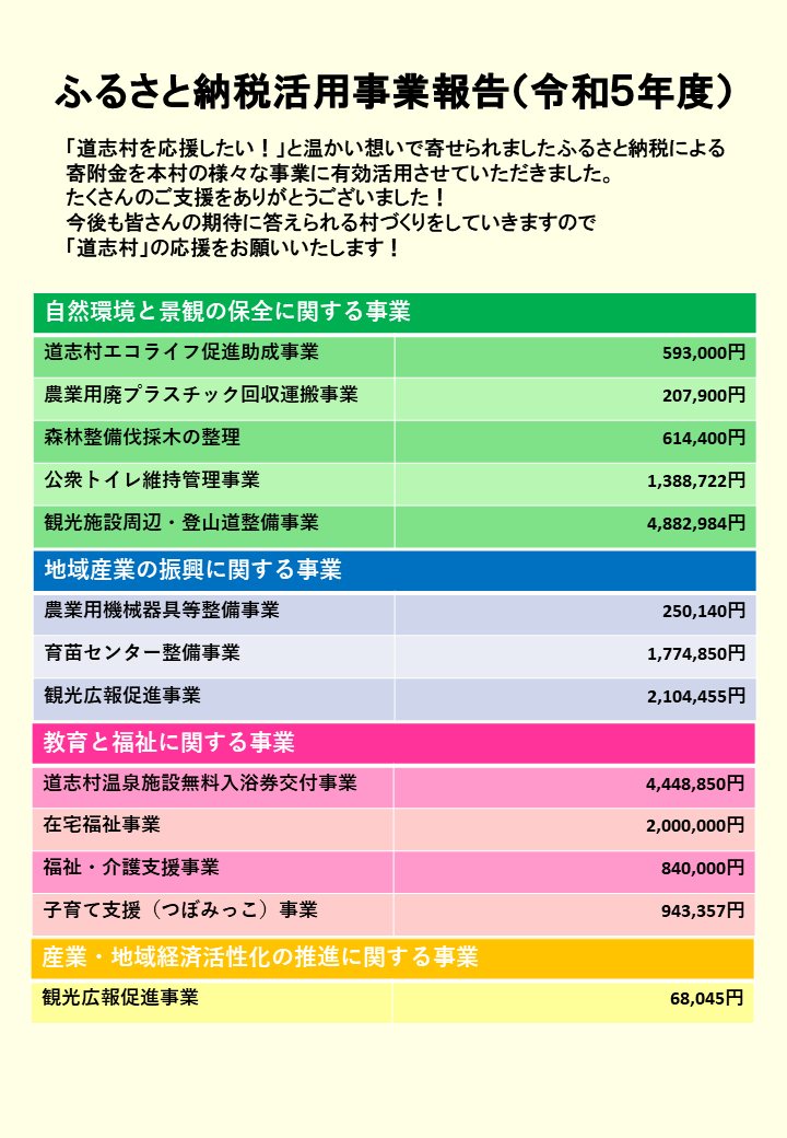 令和5年度 ふるさと納税活用事業報告について