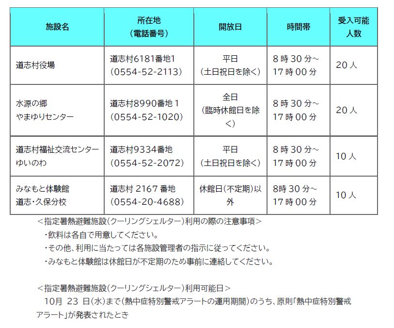 道志村では、防災無線及び告知端末にて周知予定です。暑い日は塩分・水分補給をこまめにし、熱中症を予防しましょう。