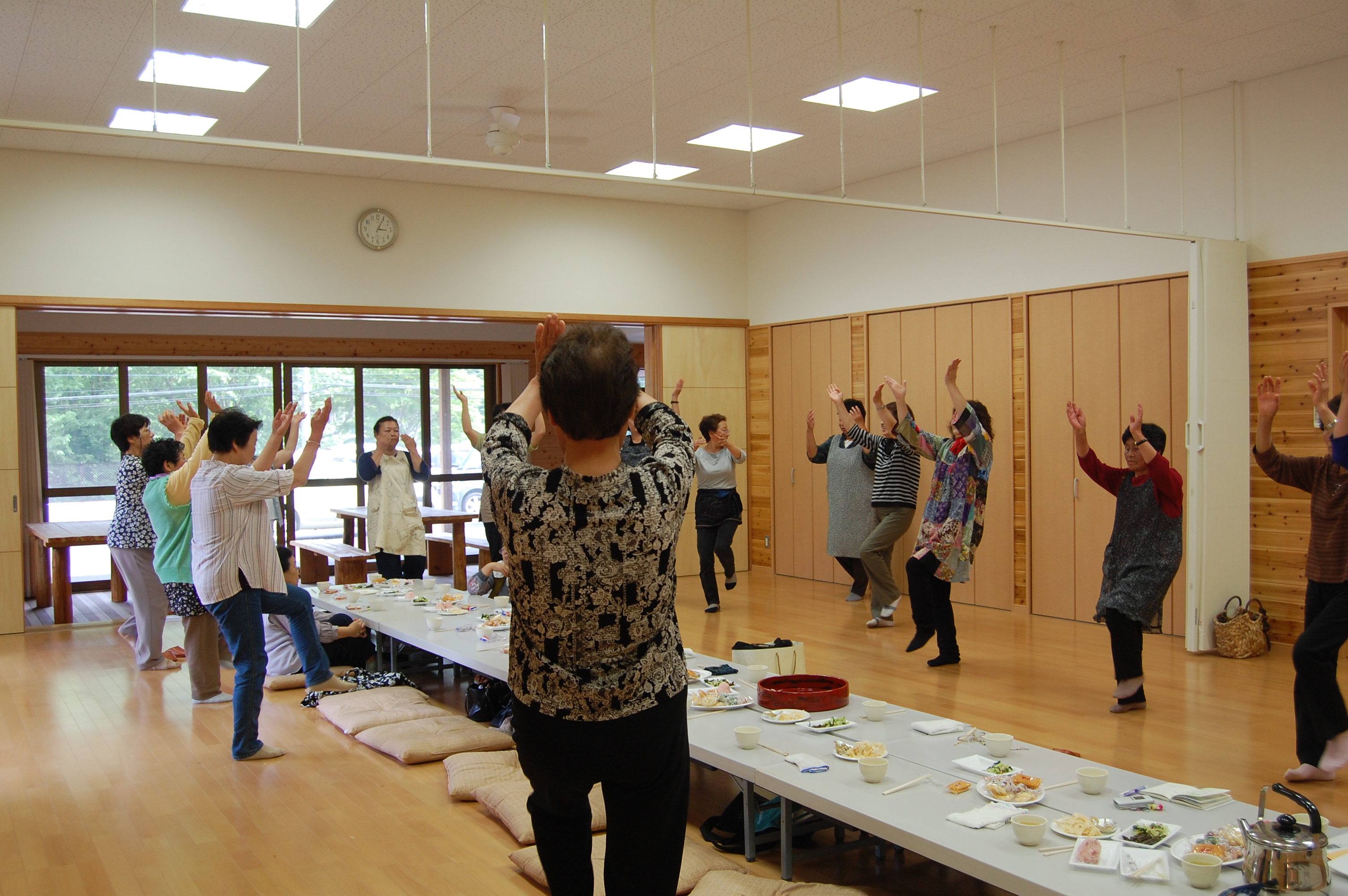 世代を超えて安心して暮らせる村づくりの「高齢者の居場所づくり」の分科会では高齢者を対象に「元気で過ごすためのお茶飲み会」を各地区で行います。