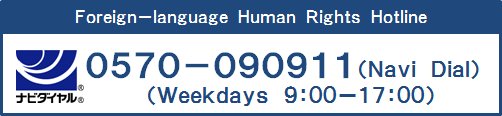 法務省の人権擁護機関では,「外国人のための人権相談所」を全国50か所の法務局・地方法務局に設置するとともに,「外国語人権相談ダイヤル」及び「外国語インターネット人権相談受付窓口」を設置し,日本語を自由に話せない外国人からの人権相談に応じています。