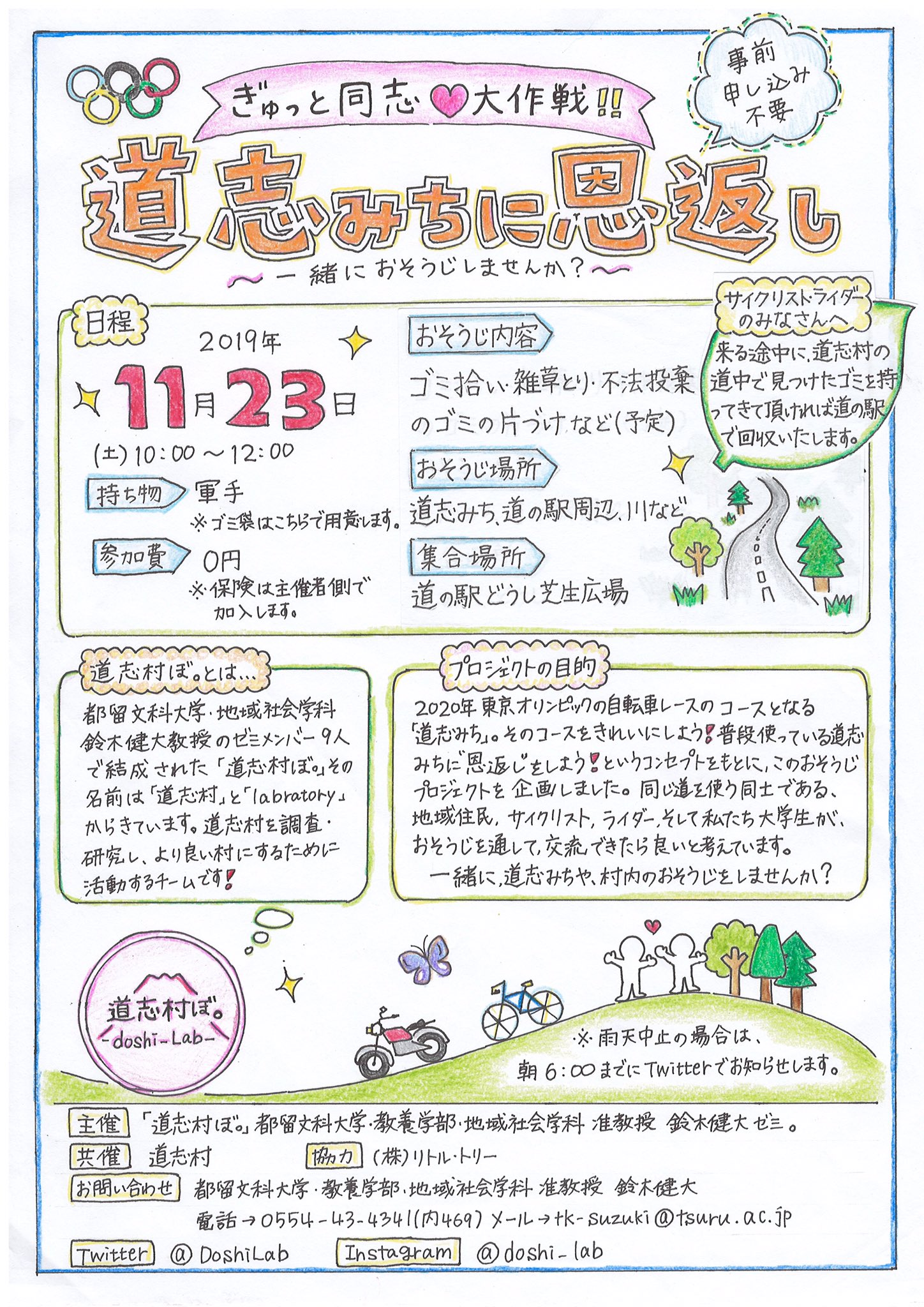 都留文科大学の学生たち9人で結成された「道志村ぼ。(Doshi-Lab)」が初企画として、お掃除プロジェクトを企画しました。