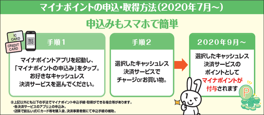 ・マイナポイントの申込み(キャッシュレス決済サービスの選択)は、2020年7月以降に可能となります。