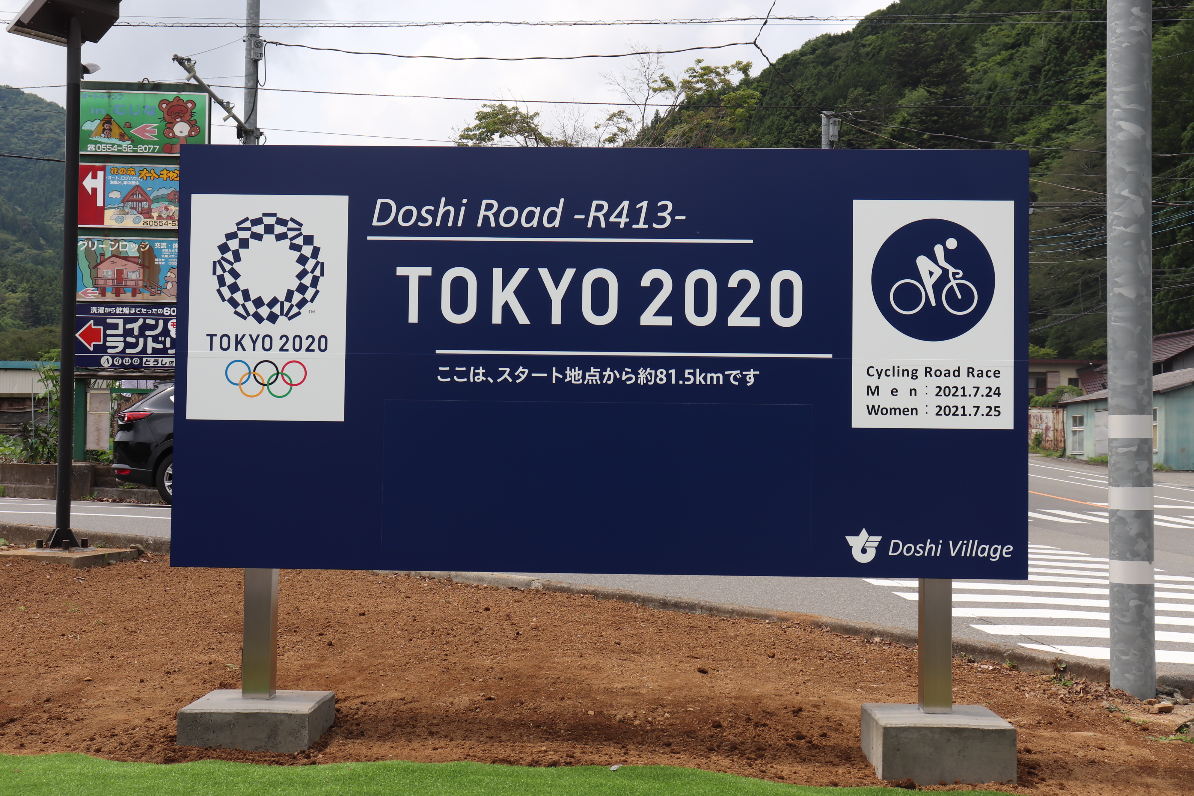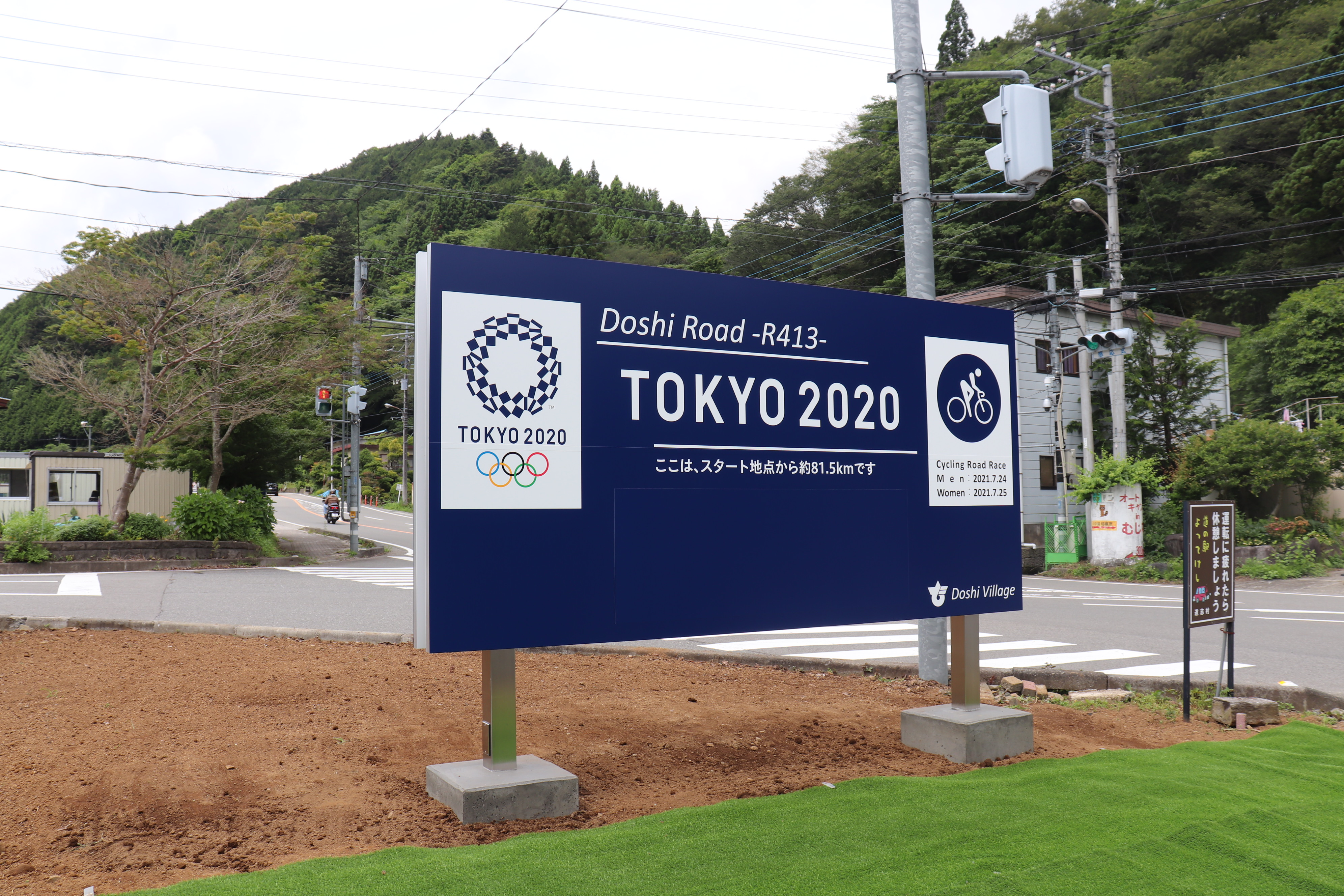 道志村では、東京2020大会に際し、村で行われる自転車競技(ロード)を国内外に広く発信するとともに、村民の機運醸成と地域の活性化のために祝祭感を創出し、魅力的な装飾を行うことを目的に、水源の郷やまゆりセンター及び道の駅どうしの2か所にウェルカムボードを設置しました。